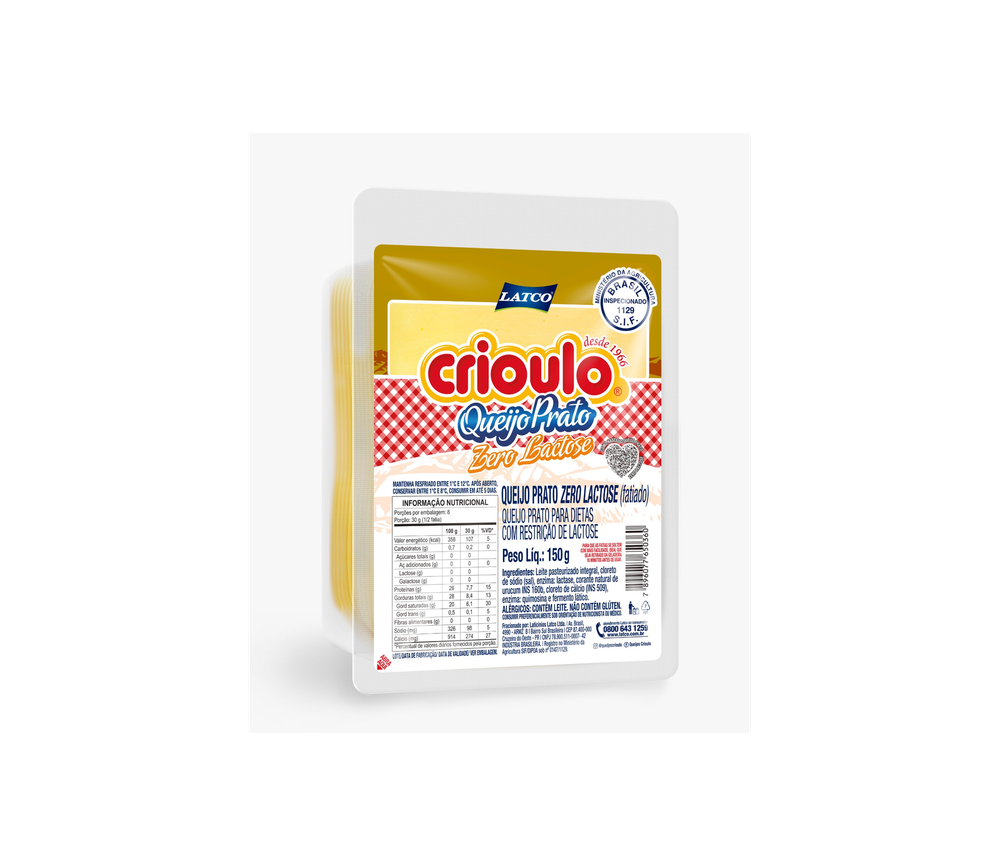 Queijo Prato Fatiado Zero Lactose Crioulo 150g