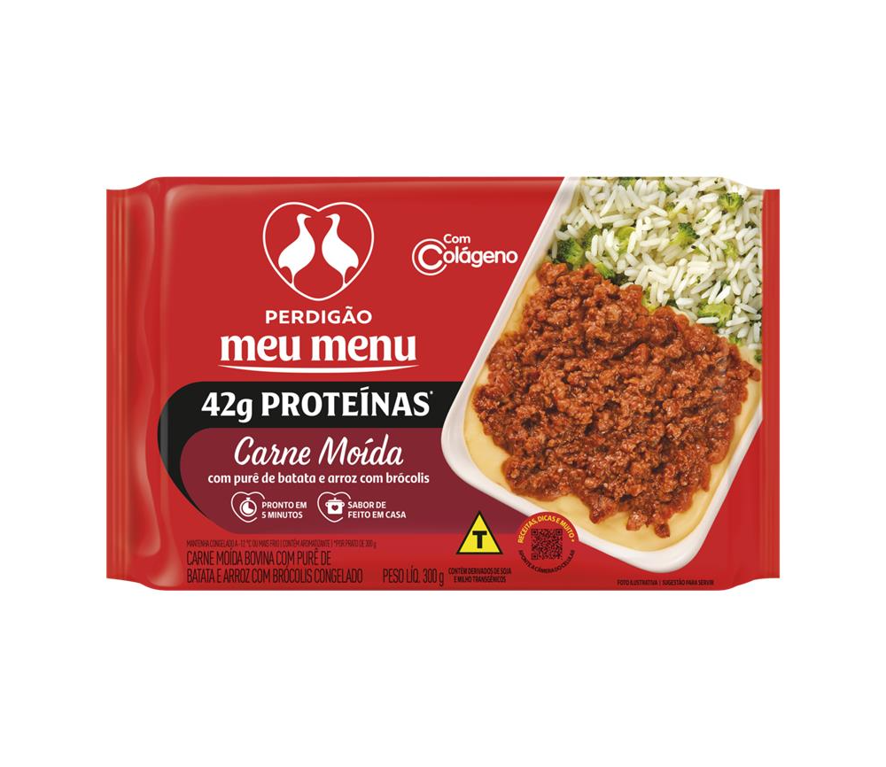 Prato Pronto de Carne Moída Com Purê de Batata e Arroz com Brócolis